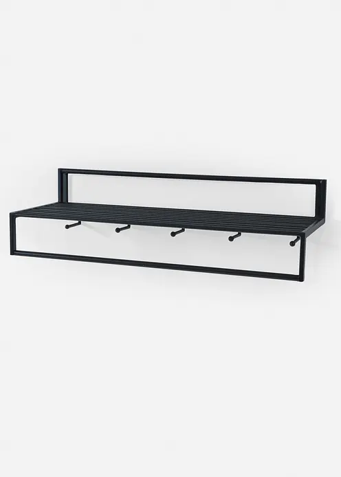 Dieses Wandregal bringt Ordnung und Design in Einklang. Mit seiner klaren Linienführung und den integrierten Haken ist es die perfekte Lösung für Flur, Schlafzimmer, oder Bad. Nutze es als Ablagefläche oder zum Aufhängen Deiner Lieblingsstücke. Entdecke, wie einfach modernes Wohnen sein kann.