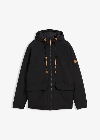 warm wattierte Jacke mit Lederimitat-Applikationen