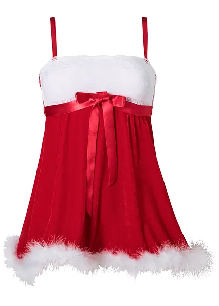 Fröhliche Weihnachten! Dieses süße Weihnachts-Babydoll verführt Sie und Ihren Partner zu kuschligen und betörenden Abenden zu zweit. Die weiße Puschelkante am Saum, die anschmiegsame Grundware und nicht zuletzt der hübsche kontrastfarbene Spitzeneinsatz passen perfekt in die Vorweihnachtszeit! Merry X-Mas!