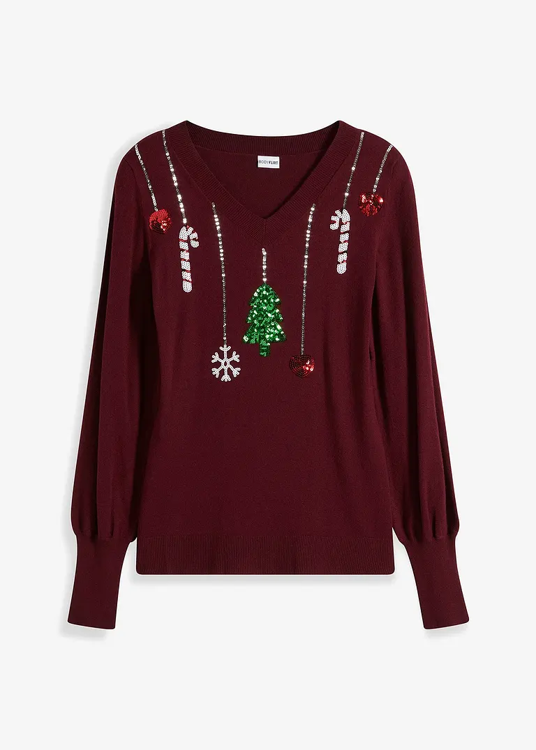 Kuscheliger Weihnachtspullover mit Paillettenmotiven