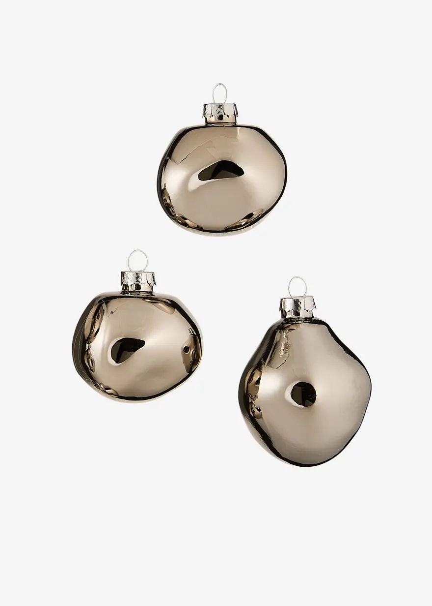 Weihnachtskugeln in organischen Formen (3er Pack) in grau von vorne - bonprix