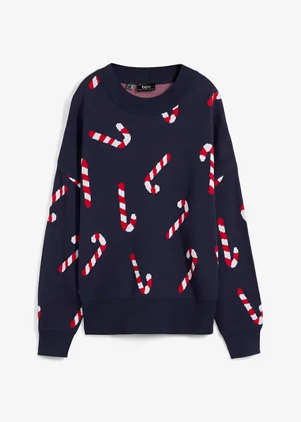 Weit geschnittener Rundhalspullover mit weihnachtlichem Motiv
