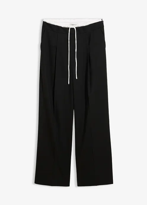 Hose mit weitem Bein und kontrastfarbigen Doppelbund mit Zip Fly und Knopf