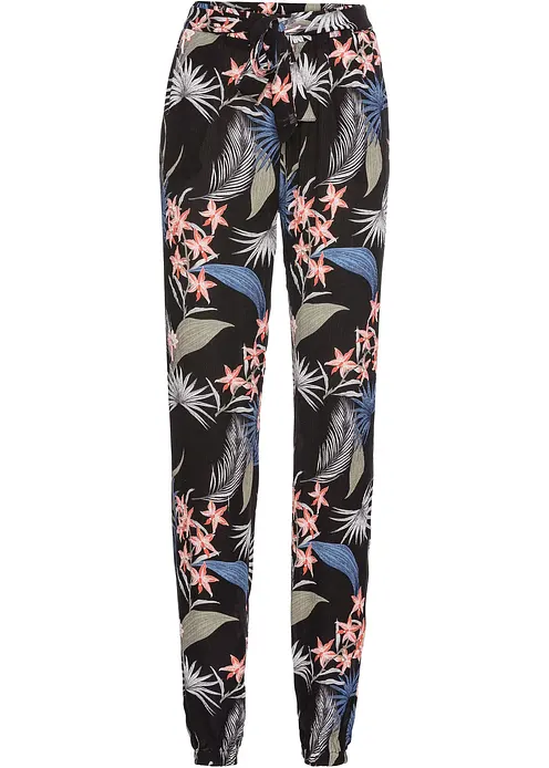 Die luftige Passform dieses Modells von BODYFLIRT umschmeichelt die Beine. Die weite Hose mit schönem Stoffgürtel und breitem Bündchen erhält mit einem elastischen Gummizug am Beinende einen attraktiven Sitz. Zwei seitliche Eingrifftaschen runden die weite Hose ab.Ein locker sitzendes Blusenshirt und Sandalen gehen mit diesem zauberhaften Exemplar eine minimalistische, aber stilvolle Verbindung ein. Etwas modischer wirkt es mit einem schlichten Top und auffälligem Ethnoschmuck.