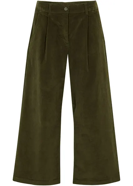 Weite Stretchcord-Culotte mit High-Waist-Bequembund, 7/8-Länge