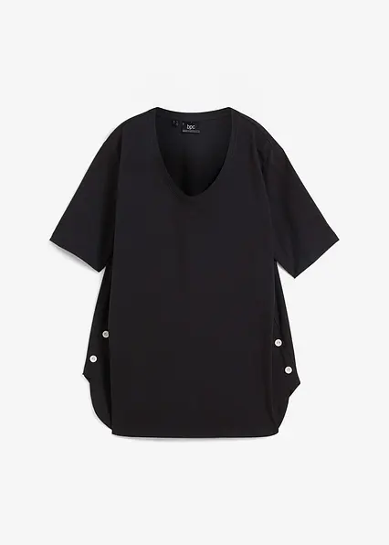 T-Shirt mit Knopfdetail an der Seite aus Bio-Baumwolle und V-Ausschnitt