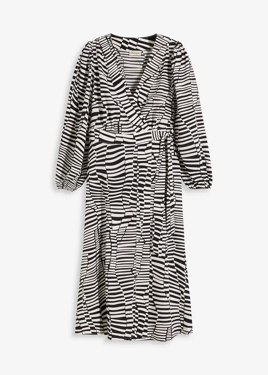 modisch bedrucktes Wickelkleid in Midilänge mit V-Ausschnitt