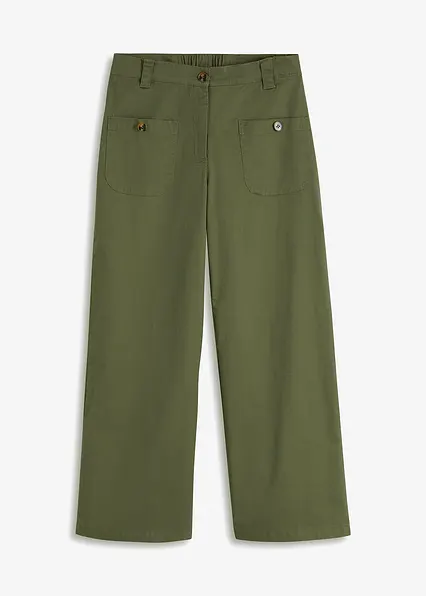 Lässige Culotte aus Twill mit 7/8 Bein und aufgesetzten Taschen