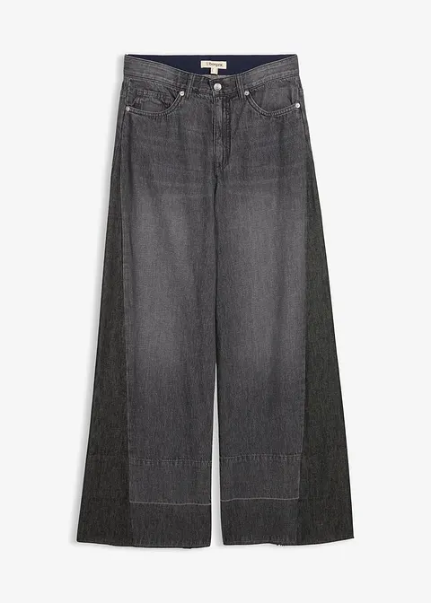 Weite 5-Pocket-Jeans mit elastischem Bequembund aus einem festen Baumwolldenim, der sich zunächst etwas steif anfühlt und durch häufiges Tragen weicher und lockerer wird.