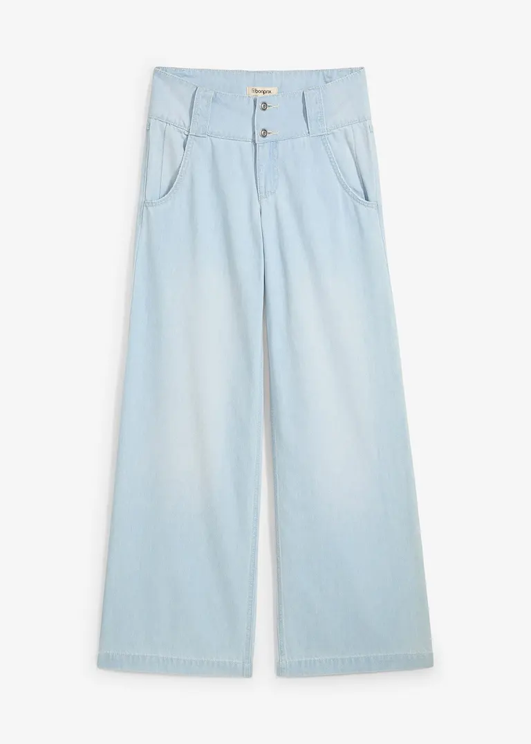Wide-Leg-Jeans Mid Waist, Super Soft in blau von vorne - bonprix