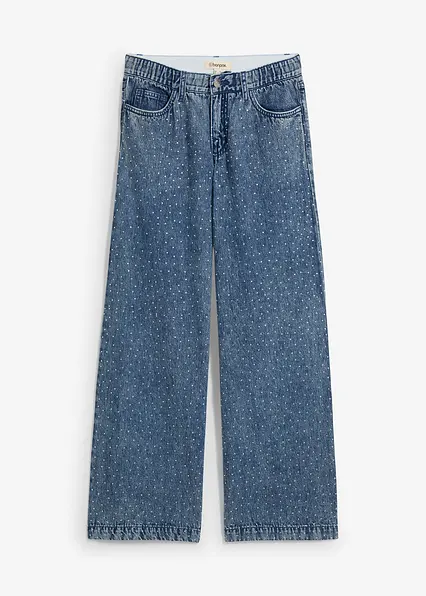Wide-Leg-Jeans Mid Waist Bequembund mit Strass