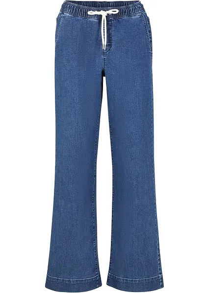 Wide Leg Jeans Mid Waist, Stretch in blau von vorne - bonprix