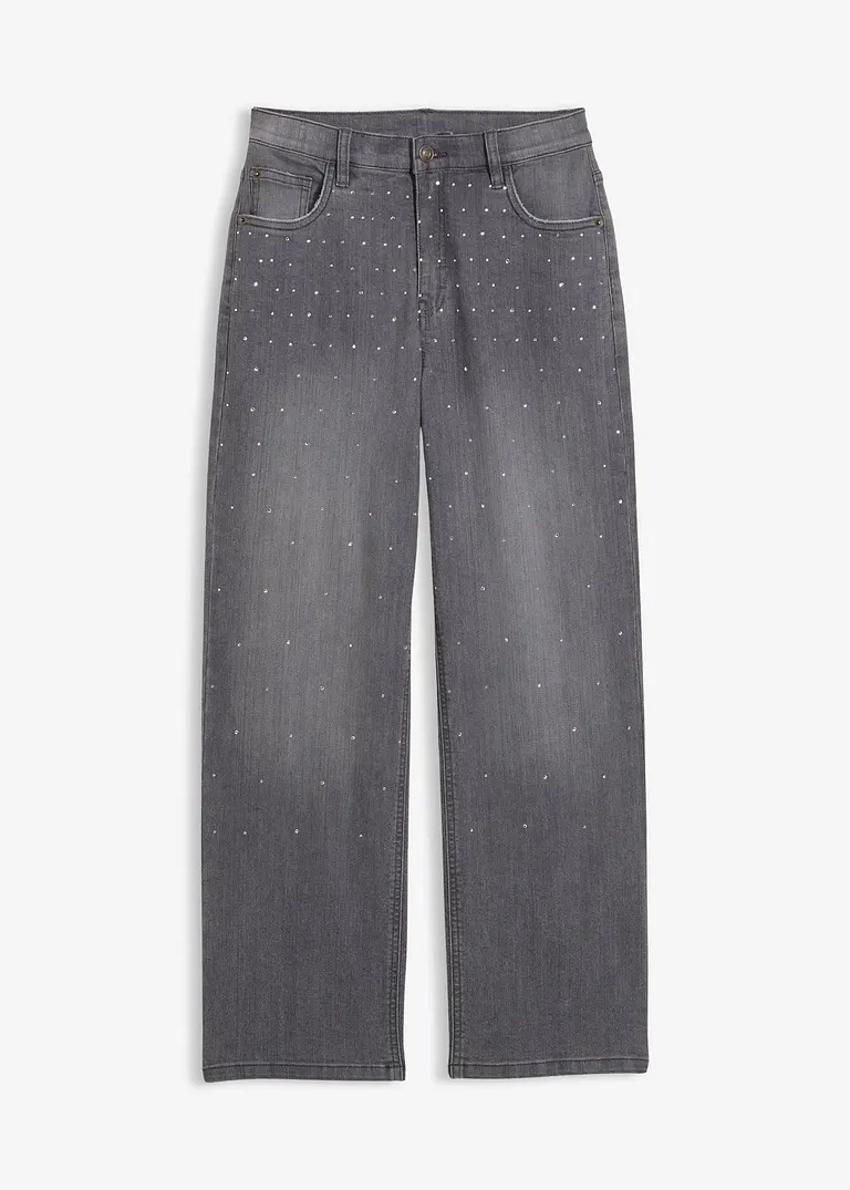 Wide-Leg-Jeans mit Strasssteinen Mid Waist