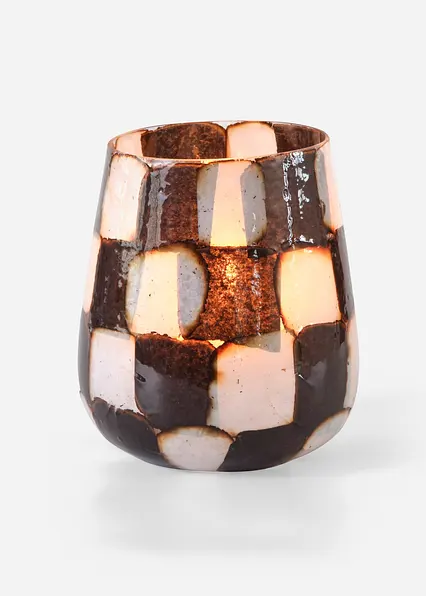 Dieses stilvolle Windlicht beeindruckt durch sein markantes, geometrisches Design und die kontrastierenden Schwarz-Weiß-Töne, die eine moderne Eleganz ausstrahlen. Die kunstvoll gestaltete Oberfläche fängt das Licht auf faszinierende Weise ein und sorgt für eine stimmungsvolle Atmosphäre, die jeden Raum bereichert. Ideal für gemütliche Abende oder festliche Anlässe, setzt dieses Windlicht kreative Akzente auf Tischen, Regalen oder Fensterbänken. Es vereint Funktionalität und ästhetischen Anspruch und ist ein zeitloses Accessoire, das sowohl klassisch als auch zeitgemäß wirkt.