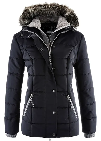 Mit dieser 2-in-1 Jacke von bpc kommen Sie wohlig warm durch die kalte Jahreszeit. Sie überzeugt durch ihr modernes Stepp-Design und einen integrierten Einsatz mit Fleece. Die Kapuze ist ebenfalls mit weichem Fleece gefüttert und mit abnehmbarem Fellimitat verziert.Vorne zeichnet sich die Jacke durch zwei Reißverschlusstaschen und einen verdeckten Reißverschluss aus. Elastische Rippbündchen an den Ärmelabschlüssen sorgen für hohen Komfort.