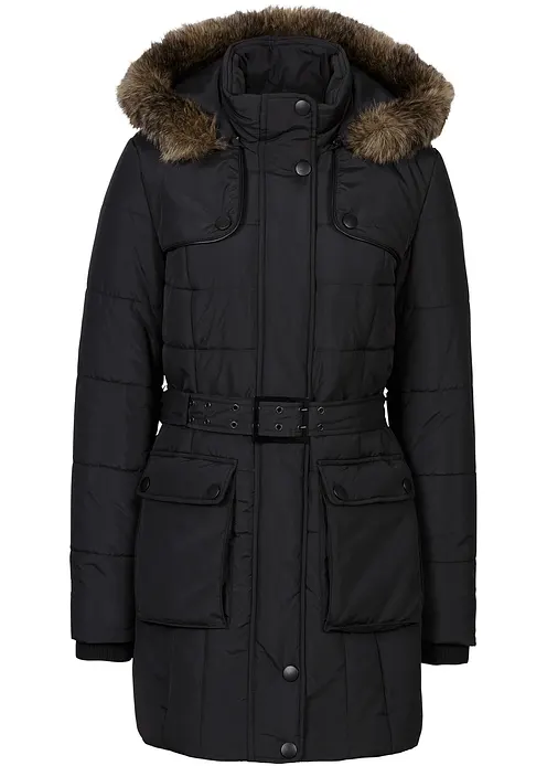 Diese Jacke von bpc ist ein praktischer und ansprechender Begleiter an kalten Tagen. Sie ist warm gefüttert und mit einer leichten Steppung gearbeitet. Ein kuscheliger Fellimitatbesatz schmückt die abnehmbare Kapuze und sorgt für eine modische Note.Die Winter-Jacke mit zwei großen Taschen schließt mittels Reißverschluss und Druckknöpfen. Mit dem verstellbaren Gürtel lässt sich die Weite individuell regulieren.
