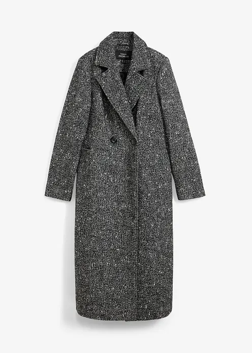 stillvoller Mantel aus hochwertiger Wollmischung in Salz und Pfeffer Optik, doppelreihig geknöpft