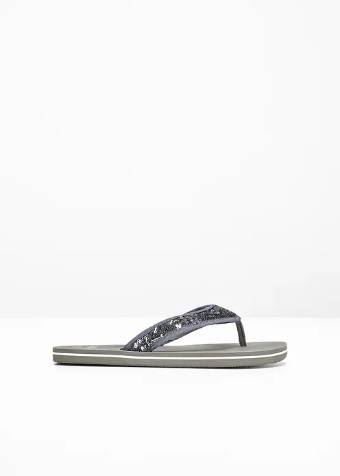 Die legere Zehenstegpantolette von bpc sorgt für ein sommerliches Urlaubsgefühl und überzeugt durch ihr effektvolles Design mit schönen Pailletten und weißem Streifen auf der Laufsohle. Sie ist vielseitig zu kombinieren und passt zu jedem lässigen Outfit. Der unkomplizierte Schuh zum Reinschlüpfen kann natürlich neben seiner Optik ganz mühelos in Sachen Bequemlichkeit punkten: An heißen Tagen ist das Tragegefühl von offenen Schuhen besonders angenehm. Die bpc Zehenstegpantolette mit Paillettenverzierung ist der perfekte Begleiter durch den Sommer.